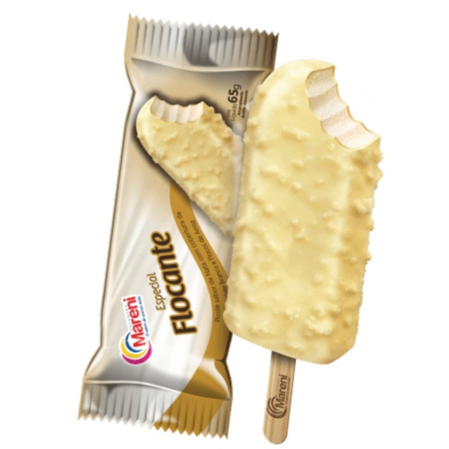 PICOLÉ DE NATA COM COBERTURA DE CHOCOLATE BRANCO E FLOCOS DE ARROZ