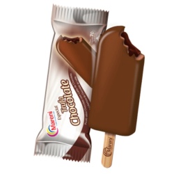PICOLÉ DE CHOCOLATE , COM RECHEIO DE CHOCOLATE E COBERTURA DE CHOCOLATE AMARGO