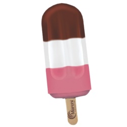PICOLÉ DE LEITE CONDENSADO,COM CALDA DE MORANGO E COBERTURA DE CHOCOLATE